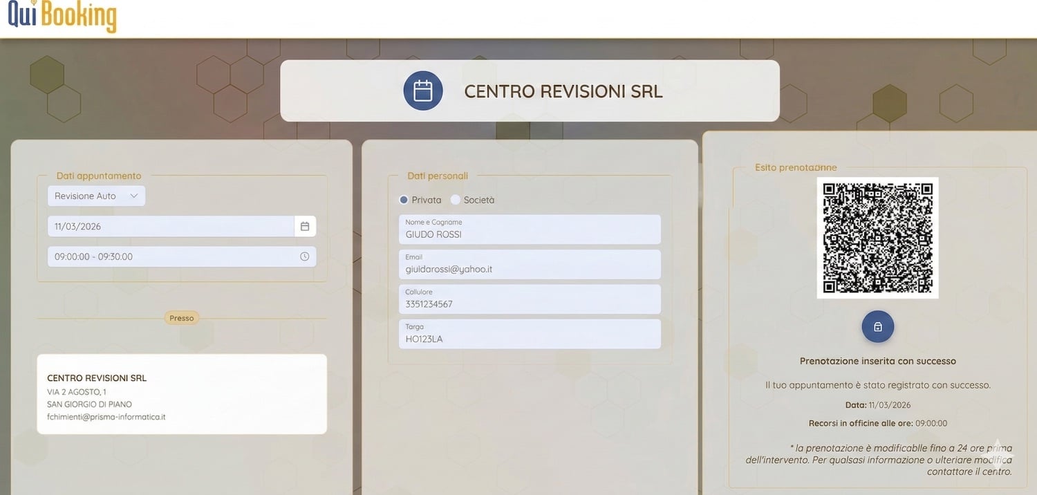 Ti basterà fornire il link di prenotazione attraverso QR code sulle lettere di richiamo, tramite link via SMS, via email, piattaforme social o sul tuo sito internet. Qui Booking è il tuo sistema di prenotazione online, ottimizzato per dispositivi mobili, che comunica in tempo reale con l’Agenda del tuo software PC Prenotazione.